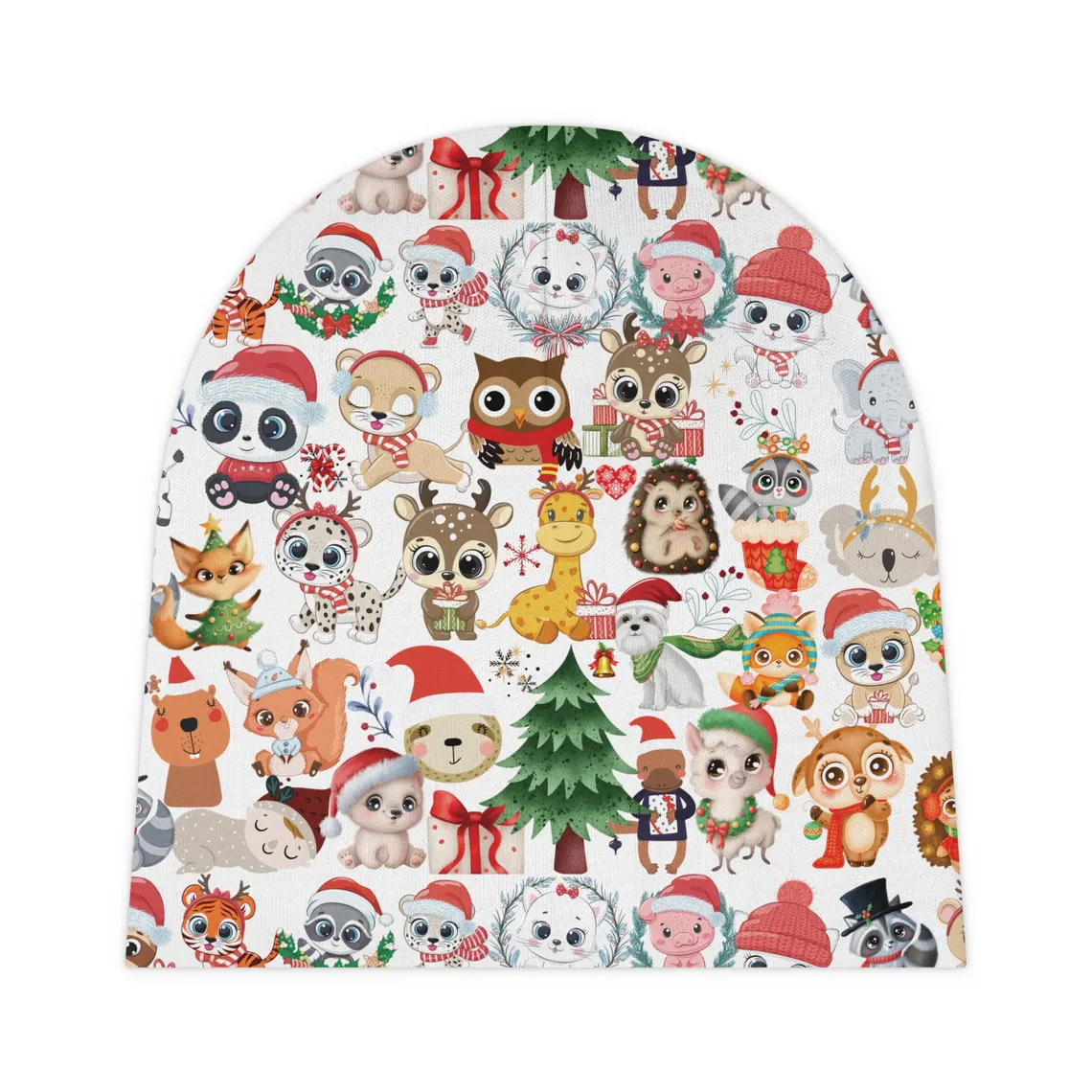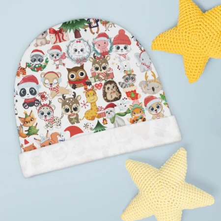 This Baby Beanie is perfect for the holiday season, featuring a personalizable Christmas themed design. Made of 100% Polyester interlock knit, this beanie is strong, durable, and smooth with a good amount of stretch. It is one size fits all and has a medium fabric weight. The same design is printed on both sides, making it a festive and cozy accessory for babies during the holidays.