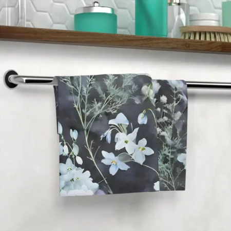 This Face Towel features a winter floral pattern on a dark charcoal background, creating a cozy and elegant vibe. It is perfect for adding a touch of sophistication to your bathroom or as a thoughtful gift for someone who loves floral designs. Ideal for winter holidays, housewarming gifts, or as a special treat for yourself.