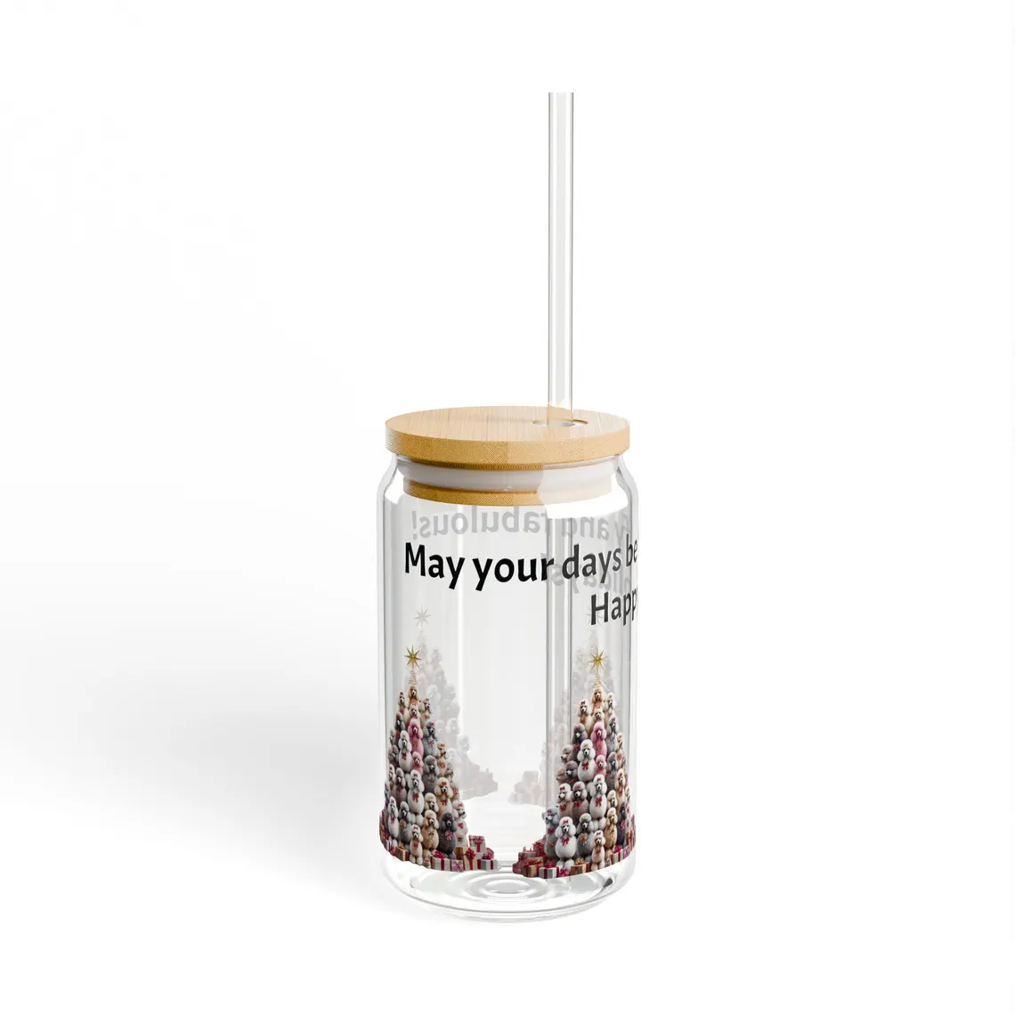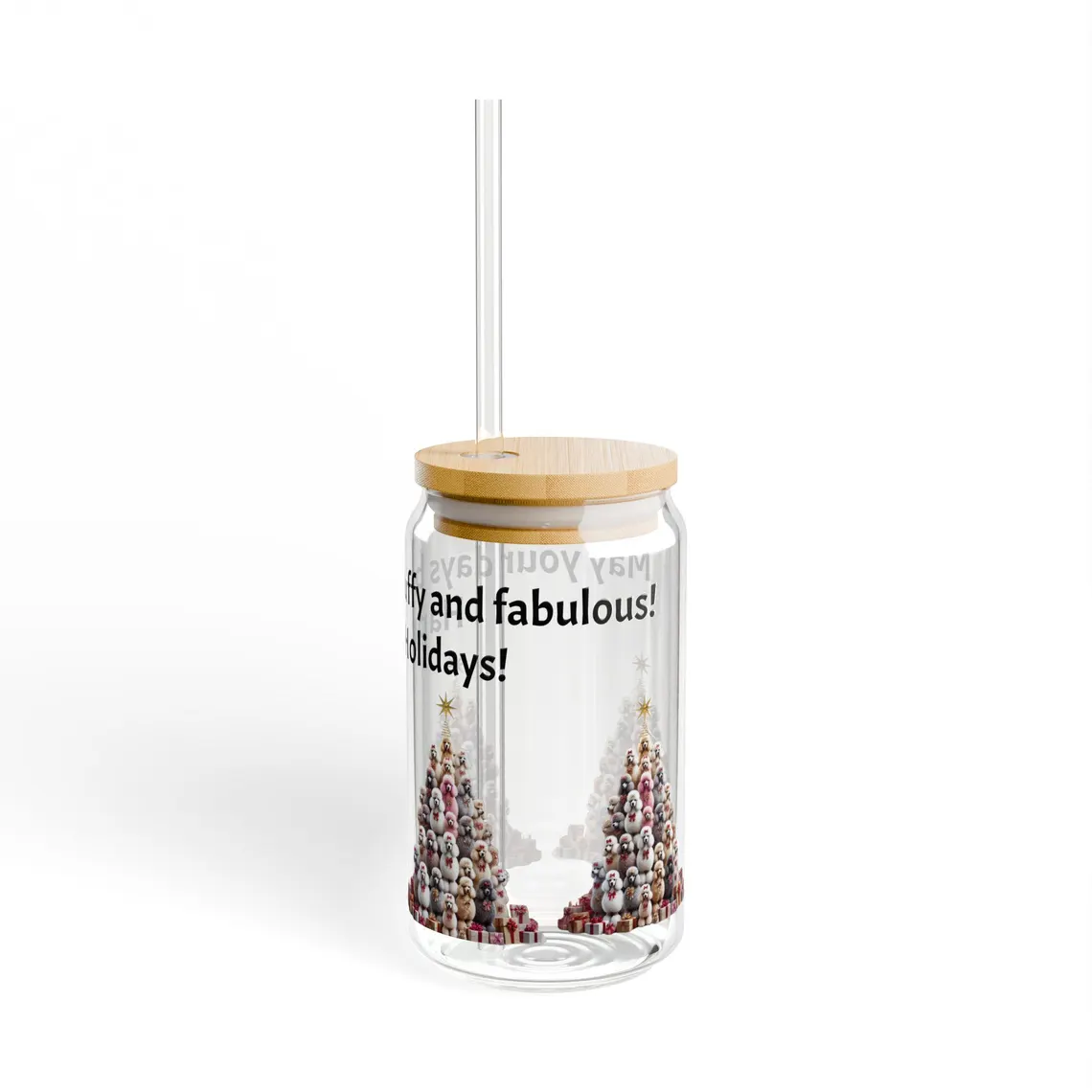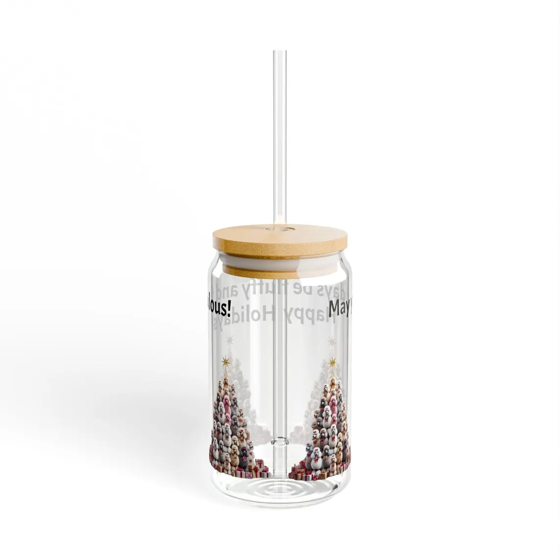 Sipper Glass, 16oz – Poodle Christmas Tree Happy Holidays Cup